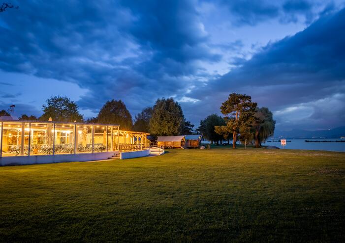 À deux pas de ce camping familial, les vacanciers et vacancières profitent d’une magnifique plage pour faire de beaux châteaux de sable ou prendre un bain de soleil. Les fans de glisse aquatique pourront également s’en donner à cœur joie : l’endroit propose de nombreuses activités tous niveaux, notamment un téléski nautique (le plus long de Suisse). Fun, action et détente garantis !